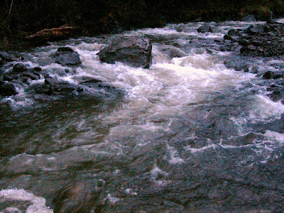 The rain is still falling, a persistent yet soothing serenade this day. The river has held well but is now losing the battle and slowly losing its clarity while gaining depth. My biggest problem in the morning will most likely be crossing the river. Oh well. I can think of worse places to NOT cross a river if it comes to that.